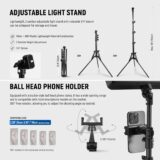 The kit comes complete with two sturdy 59” tripod stands that provide excellent stability and height adjustment, making it easy to position your lights exactly where you need them. Additionally, the included phone holders allow for seamless integration with your smartphone, perfect for vlogging or capturing stunning content on the go.